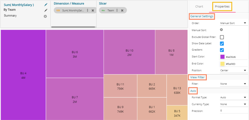 v) Search: When the number of dragged charting components increase in a dashboard, it becomes difficult for users to find out the specific component. Use the ‘Search’ bar to search for the desired components.
